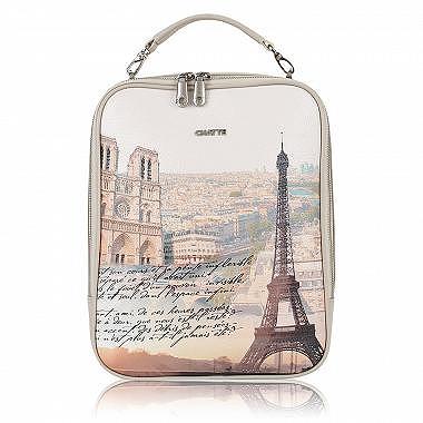 Идеальный вариант для повседневного ношения и поездки — стильный, аккуратный женский рюкзак с вдохновляющим принтом, изображающим достопримечательности Парижа. Аксессуар из натуральной кожи кремового цвета располагает одним отделом на двойной молнии. Внутри четыре кармана для удобного размещения вещей — три открытых и один на молнии. Благодаря съемной верхней ручке рюкзак можно носить в руках на манер сумки. Регулируемые плечевые лямки при необходимости отстегиваются. На задней стенке рюкзака размещается удобный вертикальный кармашек на молнии.