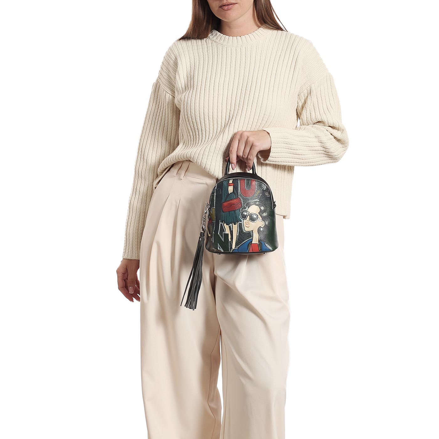 Кожаный рюкзак с принтом