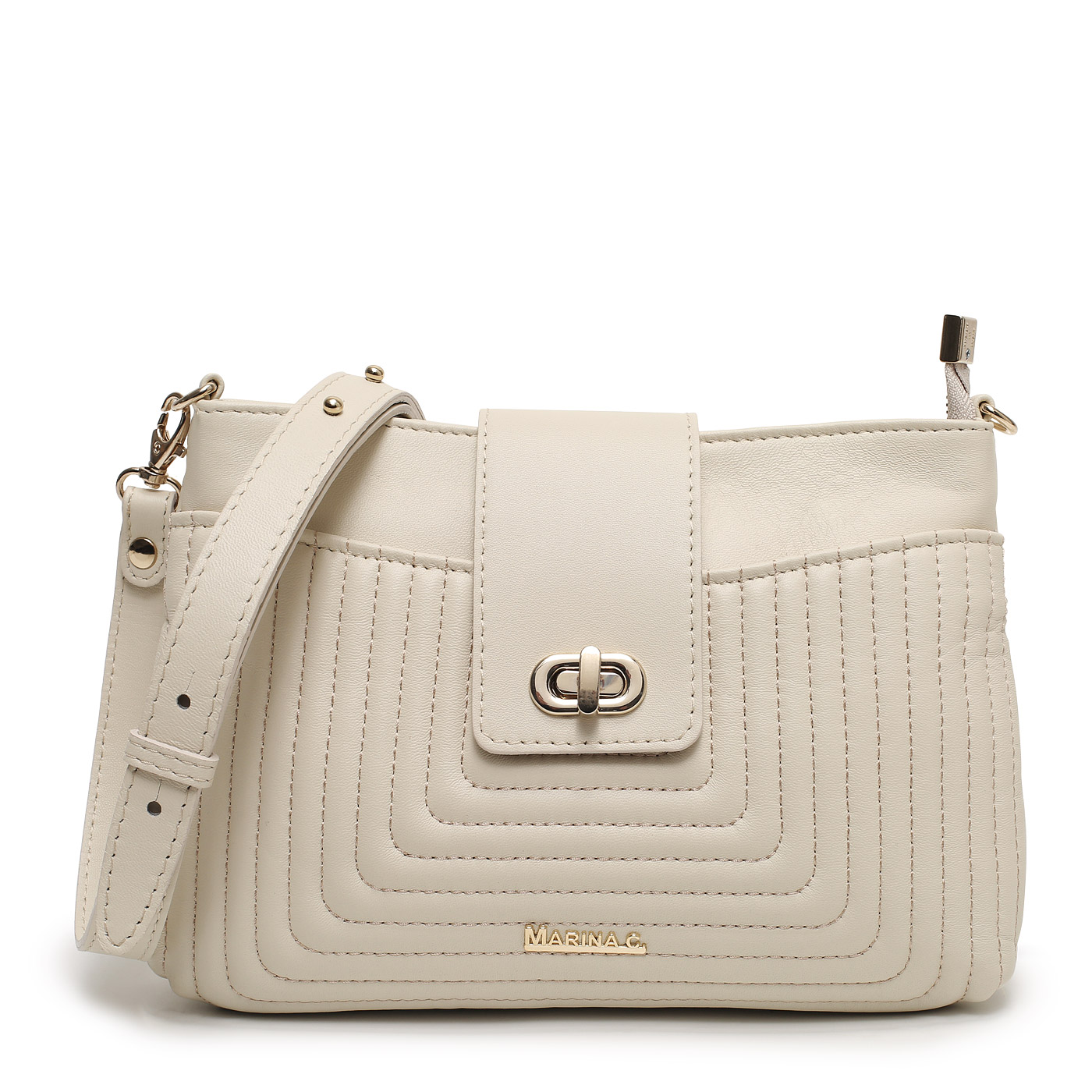 Сумка через плечо Marina Creazioni TRP217 760 7067_crema_pc - 2000558770200 кремовый натуральная кожа 25,5 x 17 x 6 Цена 19980 руб. купить в интернет-магазине PanChemodan.ru в Москве