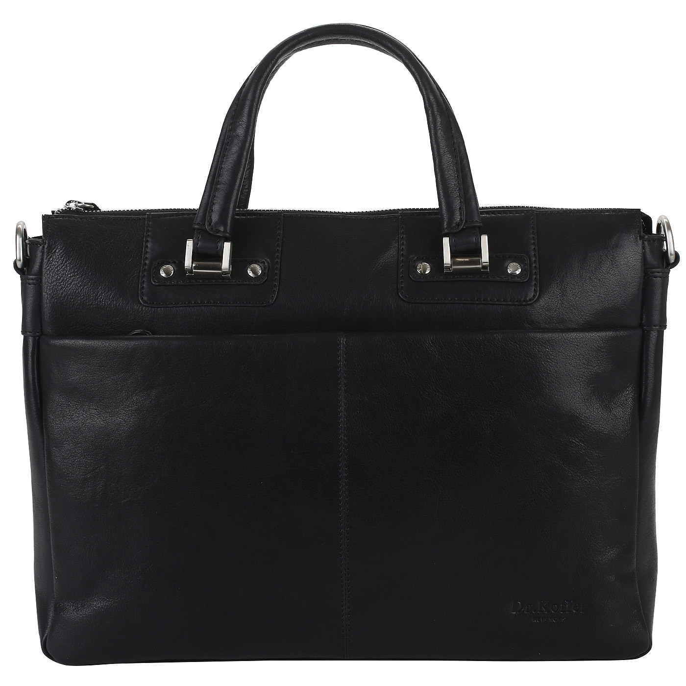 Комфорт в использовании, вместительность и практичный дизайн отличают эту деловую сумку из черной натуральной кожи. Модель на молнии располагает просторным внутренним отделом, где легко поместятся ноутбук и папки для бумаг. Внутри имеются два открытых кармана и карман на молнии. На передней и задней стенке снаружи размещен карман на молнии. Помимо верхних ручек с надежным креплением имеется съемный регулируемый ремень для плеча.